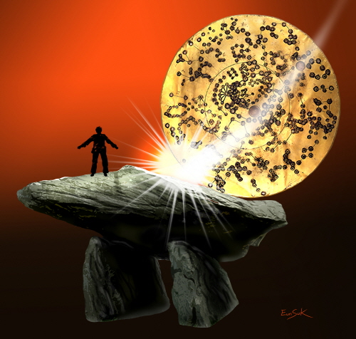 강무사는 검령산 제단 위를 지극 정성으로 빗질을 한다. 오랜 먼지가 씻겨진 뒤에 차츰 흐릿하게 작은 돌구멍들이 모습을 드러낸다. 노트에 그려졌던 천문도가 제단 바위에 드러나기 시작했다. 제단은 고대로부터 내려온 고인돌이었다. 먼지에 쌓여 진면목이 가려져 있었던 것이다.