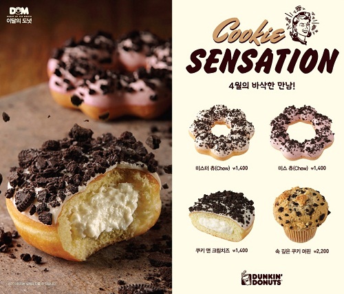 던킨도너츠 관계자는 "4월 신제품은 바삭한 쿠키 토핑을 얹은 독특한 식감으로 남녀노소 누구에게나 즐거움을 줄 수 있는 '쿠키 센세이션 도넛'을 출시하게 됐다"며 "다양한 기호와 새로운 트렌드를 반영한 신제품을 선보일 계획"이라고 말했다.