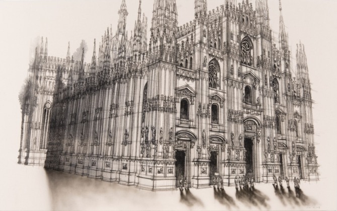 이여운, 두오모 성당, 81x130cm, 캔버스 천에 수묵, 2015