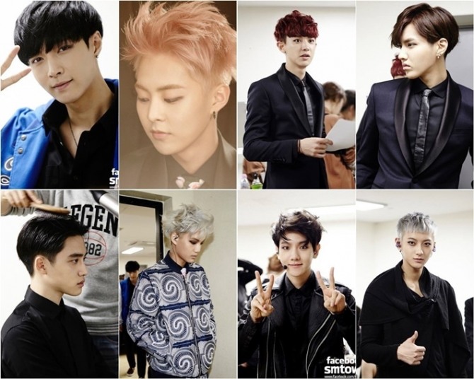 공개된 사진 속에는 무대에 오르기 전 대기실에서 헤어를 받고 있는 엑소 멤버들의 모습과, 의상을 갖춰 입고 카메를 향해 인증샷을 남기는 멤버들의 모습이 담겨 있다.