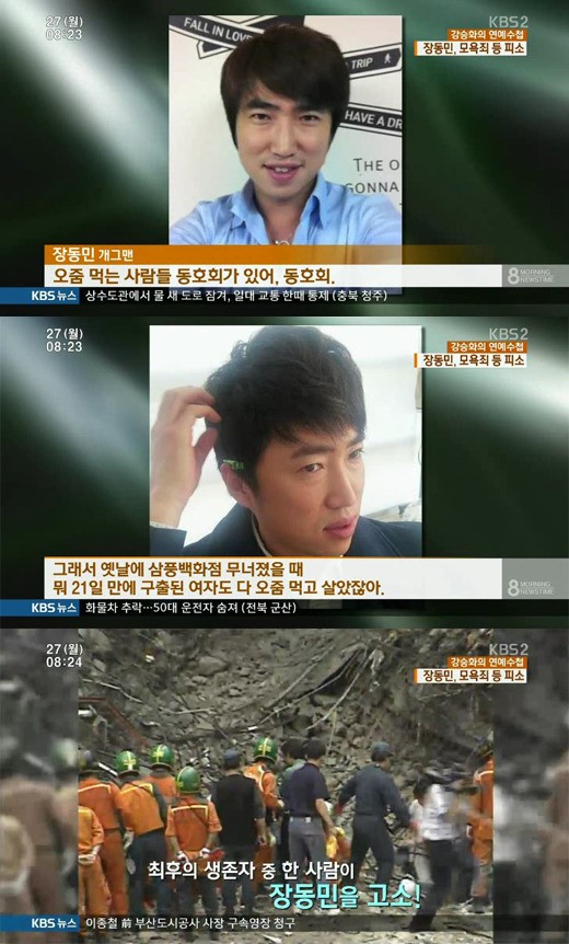 이미지 확대보기27일 오전 방송된 KBS2 ‘KBS 아침 뉴스타임’에서는 장동민이 삼풍백화점 생존자로부터 고소를 당했다고 보도했다.