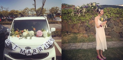 공개된 사진에는 이날 제주도에서 소박한 결혼식을 치른 김나영의 웨딩카가 담겨 있다. 특히 김나영의 전언대로 ‘JUST’의 ‘S’자가 떨어져 보는 이들의 웃음을 자아냈다.