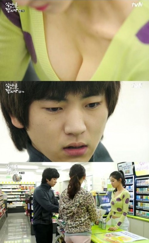 이때 혜림은 화이트 스키니진에 가슴이 훤히 드러나는 옷을 입고 일을 하고 있었고, 이를 본 이주승은 넋을 잃고 말았다.