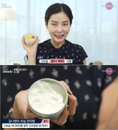 김나영은 한 겨울에도 보습을 유지하기 위해 보일러를 잘 틀지 않으며, 바디오일과 로션을 믹스해 바르거나 간편한 고보습 바디 버터로 건조함을 철저히 관리한다고 밝혔다.