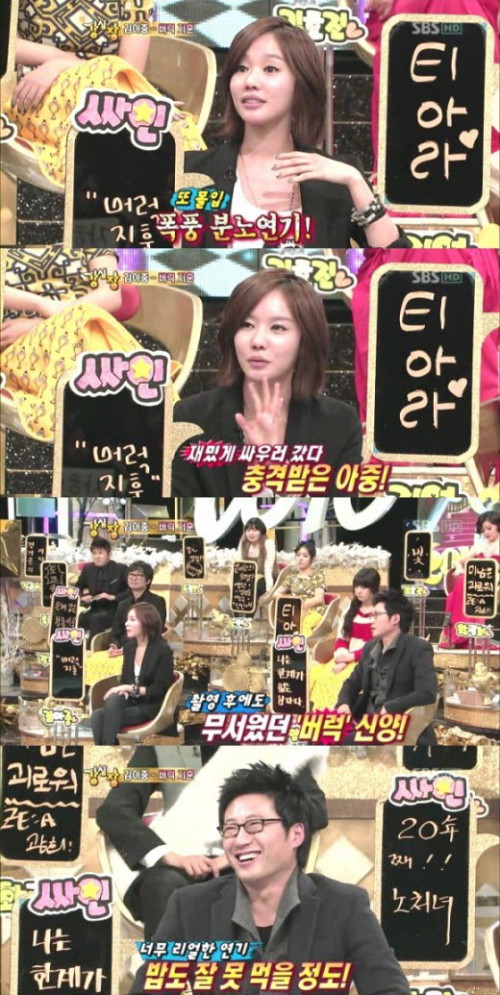 이미지 확대보기지난 2010년 12월 방송된 SBS '강심장'에서는 배우 김아중이 출연해 드라마 '싸인'에서 호흡을 맞추고 있는 박신양과의 일화를 털어놨다.