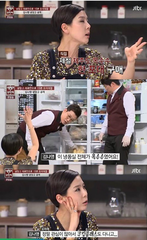 실제로 냉장고에는 김나영의 화보 사진뿐만 아니라 귀여운 어린시절 사진도 포함돼 있어 눈길을 끌었고 MC들은 “웃는 건 지금과 똑같다”며 해당 사진에 관심을 보였다. 이어 공개된 냉동고에는 옥수수가 가득해 웃음을 자아냈다.