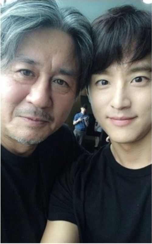 공개된 사진 속에는 ‘명량’에 출연한 배우 권율이, 흰 머리에 수염을 기른 최민식과 함께 카메라를 응시하고 있는 모습이 담겨 있다.
