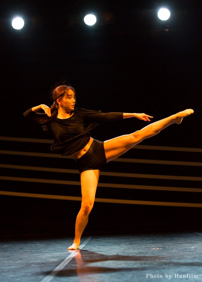 「하나인 듯, 하나 아닌, 하나같은 바흐의 무반주 독주처럼, 원무의 율동성이 화폭에서 살아 숨 쉬는 마티스의 춤처럼, 나는 끊어질 듯 끊어지지 않는 오선지 위의 음표가 되기도 하고, 선율을 타고 음표들을 재조합하는 오선의 바탕이 되기도 한다.」로 해석된다. 무대를 수평으로 가로지르며 오선지를 상징하는 다섯 개의 띠가 있고, 거울이 서 있다.