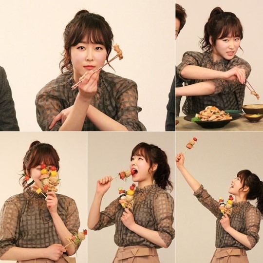이어진 촬영에서는 꼬치를 들고 '3색 매력'을 발산하고 있는 서현진이 포착됐다. 서현진은 촬영 소품으로 여러 개의 꼬치가 나오자 부끄러운 듯 얼굴을 가린 채 웃음을 터뜨리는가 하면, 입을 크게 벌리고 먹는 시늉을 하며 장난치거나, 번쩍 든 꼬치를 바라보며 행복한 미소를 짓고 있다.
