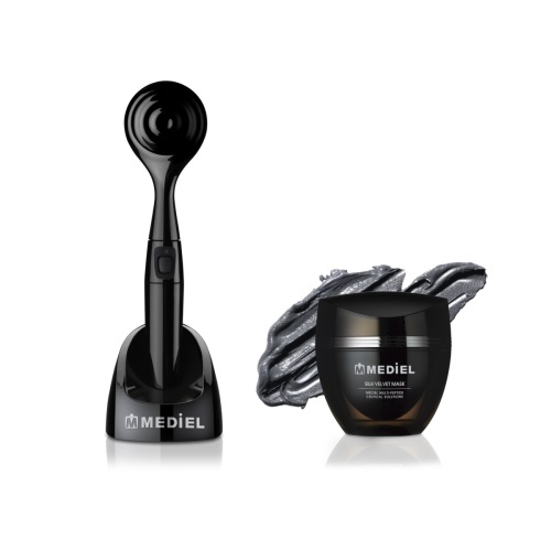 '메디엘 실크 벨벳 마스크'는 이스라엘 사해 머드를 주성분으로 한다. 자성을 이용해 피부 속 노폐물을 깨끗하게 제거하고, 수분과 영양을 공급한다. 또 함께 구성된 듀얼 이펙터는 1분당 9000여회의 진동 기능을 통해 피부의 혈액순환을 도와 즉각적인 탄력 개선 효과를 느낄 수 있다. 이세정 기자 sjl1128@