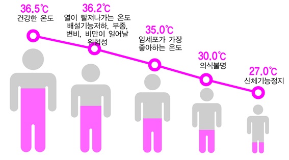 이미지 확대보기문제는 현대인의 체온이 점점 낮아지고 있다는 데 있으며, 산모도 예외는 아니다. 현대인 대부분이 평균 체온을 밑도는 저체온으로 살고 있다고 한다. 2010년 6월 한 기관에서 실험한 결과 35명의 주부 중 20명이 평균 체온보다 낮은 것이 확인되었다. 손발이 차고 아랫배가 차며 체온이 36℃ 이하인 ‘저체온’ 환자가 늘고 있다.