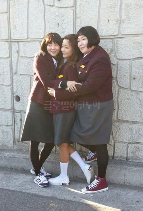 공개한 사진 속에는 자주색 교복을 입고 여고생으로 변신한 배우들의 모습이 담겼다. 특히 김희선은 30대라는 나이가 믿기지 않을 정도로 교복을 무리 없이 소화하고 있어 눈에 띤다.