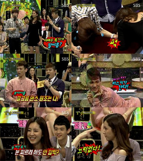 이 밖에도 샤이니(SHINee) 멤버 키(Key)는 "여자 아이돌 댄스의 원조는 나다. 조권이 웃기게 해서 원조처럼 보인다"며 미쓰에이(Miss A)의 'Bad girl good girl' 골반댄스를 보여주기도 했다.