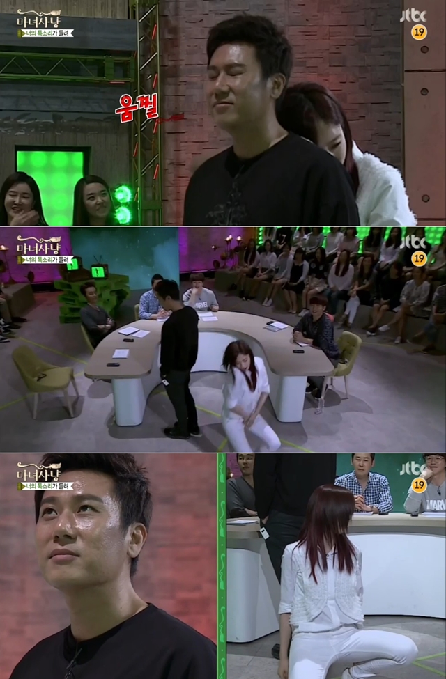 반주가 시작되자 은정은 이상민의 등에 기대 웨이브를 췄다. 긴장한 이상민은 은정의 댄스를 보지도 못하고 묵묵히 뒤돌아 서있어 웃음을 자아냈다.