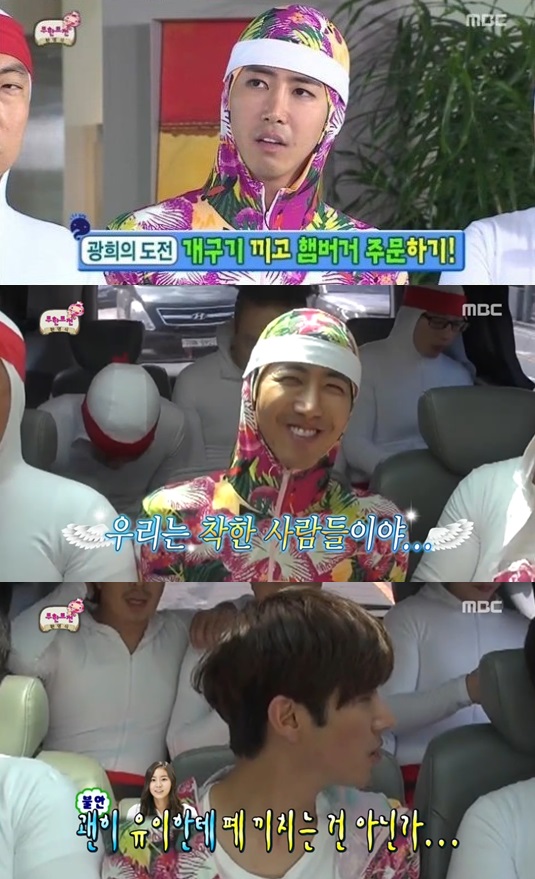 이날 방송에서 기존 멤버들이 했던 임무를 광희가 수행하는 시간을 가졌고, 광희는 스타킹을 머리에 쓰거나 깔창 따귀를 맞는 등 멤버들과 함께 신고식을 치렀다.