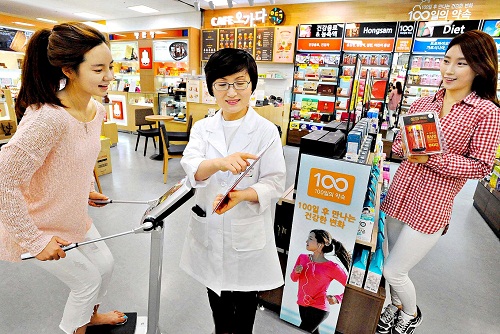 '헬스 플러스'에서는 300여 종의 건강기능식품을 용도, 체질 등으로 구분해 진열한다. 고객 본인에게 맞는 상품을 손쉽게 구매할 수 있도록 돕는다. 전문 상담사를 통한 '사상 체질 진단 서비스' '인바디 측정 서비스' 등을 제공한다.