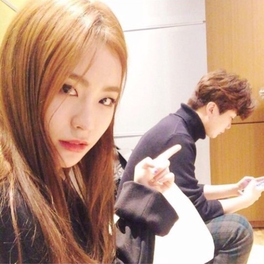 공개된 사진 속 그는 시크한 표정으로 손가락으로 윤현상을 가리키며 카메라를 응시하고 있다. 특히 시원한 이목구비와 진한 화장이 보는 이들의 시선을 사로잡는다.