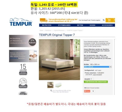 템퍼는 "160만원 선에서 판매되는 국내 템퍼 제품과 동일한 제품의 유럽 판매 가격은 약 149~170만원 선"이라며 “유럽에서 판매되는 템퍼 제품의 경우, 판매가격이 국내보다 높거나 다소 낮게 책정되는 경우가 있다”고 설명했다.