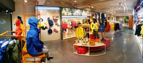 네파 ‘부산광복직영점’은 타 브랜드와는 차별화되는 컬러 배색이 특징이다. 메인 컬러인 아이보리에 오렌지 및 다크그레이 컬러를 포인트 줌으로써 극명한 대비를 통해 색감을 두드러지게 표현, 매장 전체를 자유로운 아이들처럼 생동감 있게 연출했다.