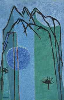 1956년 작품인 김환기의 '블루 마운틴'은 간결한 화면에 산, 나무, 달 등이 그려져 있다. 당초 추정가는 150만~250만 홍콩달러였으나, 이날 경매에서 4배에 최종 낙찰됐다.