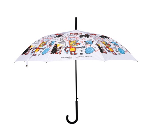 깨끗한 흰색 우산 위에 형형색색의 크레파스로 아기자기하게 낙서한 듯한 장 미쉘 바스키아 작품들의 이미지는 아티스트적인 요소를 한층 부각시켜 제품의 소장가치를 높여주었다.