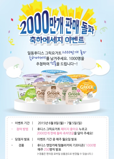 일동후디스 관계자는 “일동후디스의 ‘후디스 그릭’ 판매량이 2000만개을 넘어섰다는 것은 이제 명실공히 대한민국 대표 그릭요거트로 자리 잡았다는 것을 말해주는 것”이라며 “대한민국의 그릭요거트 시장을 개척하고, 이끌어 나가면서 2015년 매출 100억원 달성뿐만 아니라 국민들의 지속건강에 기여하겠다는 목표를 향해 임직원 모두가 노력하겠다”고 말했다.