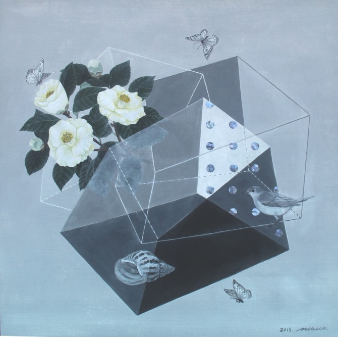 ‘자연-경계’는 작가가 새롭게 선보이는 주제이다. 인간은 다양한 형태로 형성된 공간속에서 삶을 영위해 왔다. 무한의 자연 속에 여러 형태의 공간이 형성되어 왔다. 비가시적 공간은 잠재적 의식의 공간도 포함된다. 자연의 공간에는 경계가 존재하는 것 같으면서도 없으며 상호 공존하는 공간이 있다. 인간에게는 시각적으로 보이는 현실공간과 보이지 않지만 인간의 심연에 존재하는 과거, 현재, 미래의 이상공간이 있다. 작가가 유형의 가상 형태로 설정한 공간에 다수의 공간을 결합한 화면경영이 이루어진다. 자연의 공간을 현실공간과 이상공간을 결합하여 꽃, 어패류, 조류, 곤충 등 자연물을 소재로 하고 육각의 도형을 차용하여 현대적 조형성으로 구성, 표현한 작품이다.