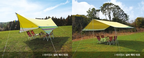 이미지 확대보기실버 헥사타프는 2인 친구와 연인, 실버 렉타타프는 4인 가족이 사용하기에 넉넉한 공간을 갖췄다. 무게가 가벼워 휴대하기에 편리한 것이 특징이다. 특히 내수압 3000mm 원단으로 비를 완벽히 막아줄 뿐만 아니라 원단 전체에 실버코팅을 적용해 햇빛을 차단하고 그늘을 만들어주기 때문에 여름철 캠핑이나 여행에 필요한 제품이다.