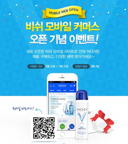 이미지 확대보기비쉬는 이벤트 기간 동안 비쉬 모바일 커머스 사이트를 통해 제품을 구입한 모든 고객에게 비쉬 전 제품을 10% 할인된 가격으로 구입할 수 있는 할인 쿠폰을 증정한다. 또 비쉬 모바일 페이지 내에서 본인의 SNS로 모바일 커머스 오픈 소식을 공유한 고객을 대상으로 추첨을 통해 30명에게 비쉬의 베스트 셀러 제품인 ‘오떼르말 스파워터’ 정품을 증정한다.
