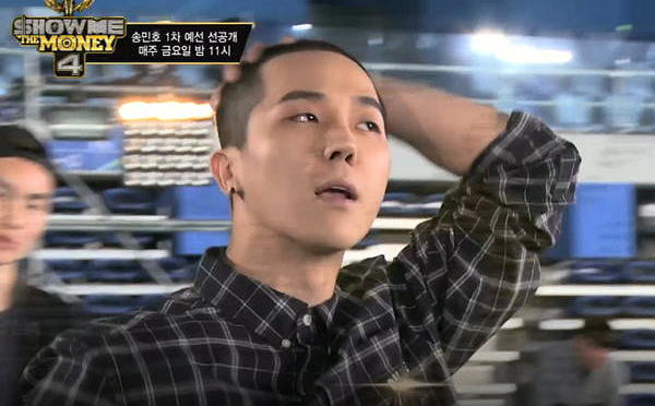그는 3일 오후 11시 방송된 엠넷 '쇼미더머니4'에서 머리를 삭발하고 나타나 “양현석 사장님이 한마디로 모든 부담을 주셨다”라며 “떨어지면 YG 아웃이라고 하셨다”고 말하며 긴장된 모습을 보였다.