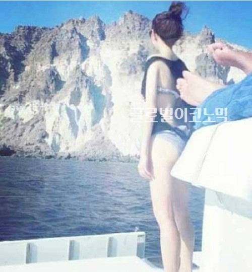 공개된 사진 속 조혜정은 비키니 위에 민소매티셔츠를 걸친 채 바다를 응시하고 있다.