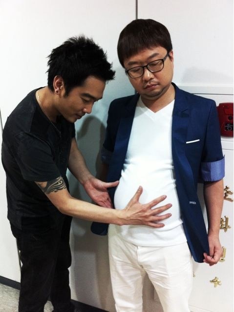 사진 속 고영욱은 복도에서 한껏 부풀린 박휘순의 배를 쓰다듬고 있다.