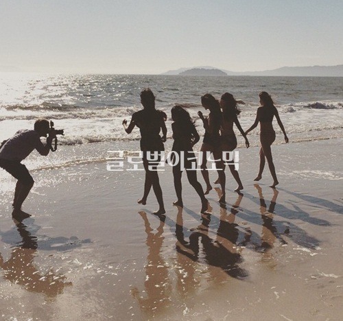 사진 속, 그녀들은 수영복을 입고 어두운 조명에 맞는 포즈를 취하고 있다.