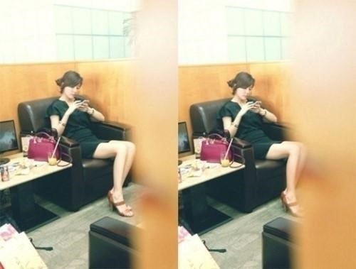 특히 무보정임에도 소파에 앉아 있는 김하늘의 늘씬한 옆라인이 인상적이다.