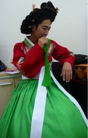 특히 공개된 사진 속 그는 붉은색 저고리에 녹색 치마를 맞춰 입고 가체까지 쓴 것은 물론 속눈썹까지 길게 붙여 마치 한 명의 아낙네를 보는 듯 했다.