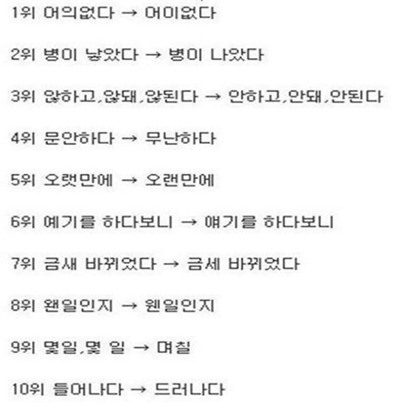 이뿐만 아니라 인건비를 인권비로, 중태를 중퇴로, 치르는을 치루는으로 쓰는 경우도 있어 누리꾼들의 눈살을 찌푸리게 했다.
