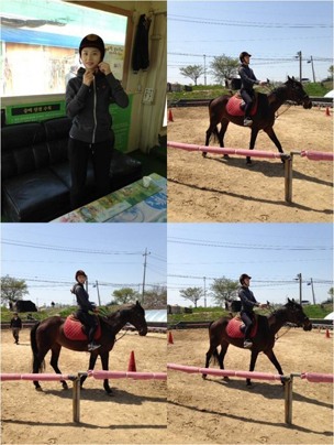 공개된 사진 속 박수진은 승마모를 착용한 채 밝은 표정으로 승마 연습을 하고 있는 모습 등이 담겨져 있다.