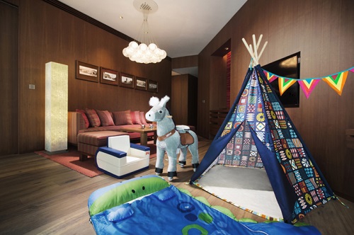 키즈룸에는 집이 아닌 낯선 환경에서도 아이가 쉽게 적응하고 즐거운 휴가를 보낼 수 있도록 도와주는 △유아동 텐트 브랜드 ‘쿠나텐트’ △캐릭터 침구 브랜드 ‘밀로앤개비’ △승마완구 브랜드 ‘포니사이클’ △가구 브랜드 ‘북클레벤’의 대표 제품이 비치됐다.