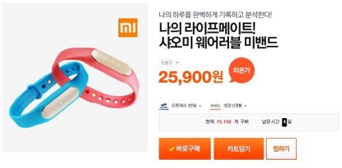 현재 티몬에서 가장 인기를 끌고 있는 상품은 샤오미의 미밴드로 전체 스마트밴드 판매량의 86%를 차지하고 있다. 2만원대의 저렴한 가격대에 디자인은 물론 걸음수와 칼로리소모량, 수면효율 측정 등 다양한 기능을 갖췄기 때문으로 풀이된다.