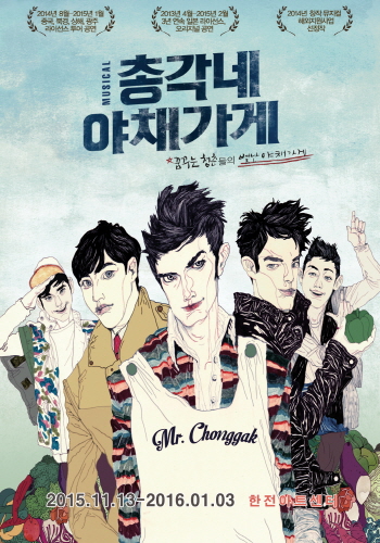 뮤지컬 '총각네 야채가게'는 불확실한 미래를 살아가고 있는 다섯 청년의 좌충우돌 창업 성공기를 그린 작품이다. 2008년 첫 선을 보인 이후 대중성과 작품성을 동시에 인정받은 한국 창작 뮤지컬의 대표주자이다.