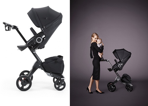 스토케익스플로리트루 블랙은 디럭스 유모차인 익스플로리의 후드와 시트 등 텍스타일 부분, 섀시와 바퀴까지 모두 블랙 컬러로 제작된다.