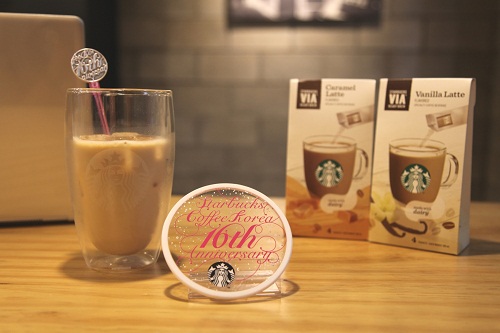 이미지 확대보기이번 이벤트는 '스타벅스 비아 캐러멜 라떼' '스타벅스 비아 바닐라 라떼' '스타벅스 비아 카페 모카' 등 3종류의 비아 라떼 중 2개를 동시에 구입하면 16주년을 기념 머들러 혹은 코스터를 증정하는 내용이다.