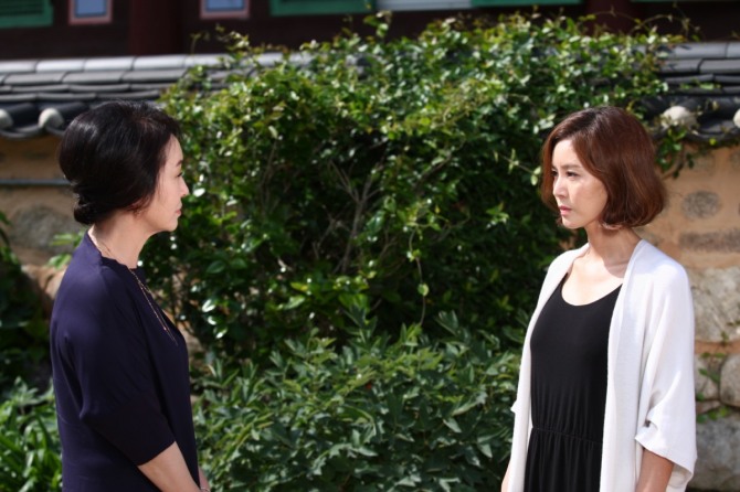 공개된 사진은 희라가 레나가 있는 절로 찾아가는 장면이다. 팔짱을 낀 채 먼 곳을 바라보는 모습에서 '가진 자'의 여유가 느껴진다. 희라는 '살인자의 딸'이라는 비장의 카드를 갖고 있기 때문. 여유를 갖고 주위를 둘러보는 희라와 긴장감이 역력한 레나의 모습이 대조적이다.
