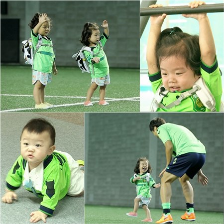 24개월의 설아는 철봉을 잡고 30초나 버티며 운동선수인 아빠의 근력을 닮은 모습을 보여주고, 물을 가져다 달라는 아빠의 요청에 주저없이 뛰어다는 모습까지 발휘해 딸바보 아빠를 미소짓게 만들었다.