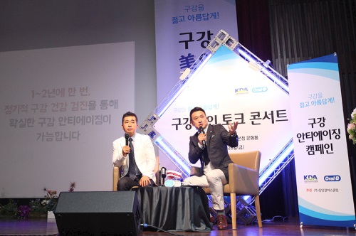 강연자로 나선 대한치과의사협회의 이정욱 홍보이사는 사회를 맡은 개그맨 서경석과 환상의 호흡을 자랑하며 다양한 구강 건강 정보를 알기 쉽고 재미있게 담아내 3백여 명 이상의 관객들로부터 큰 호응을 얻었다.