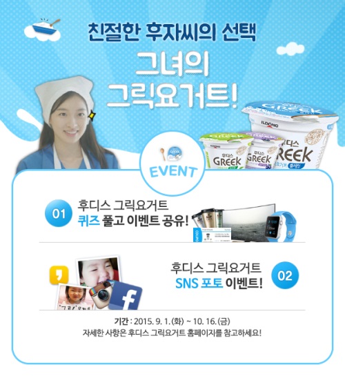 이에 따라 일동후디스는 9월 1일부터 10월 16일까지 그릭요거트 홍보 영상 ‘친절한 후자씨’ 퀴즈&공유 이벤트를 실시한다. '후디스 그릭' 브랜드 사이트에서 홍보영상을 감상한 후 퀴즈를 풀고, 감상평과 함께 각자의 SNS 공유 결과를 남기면 된다.