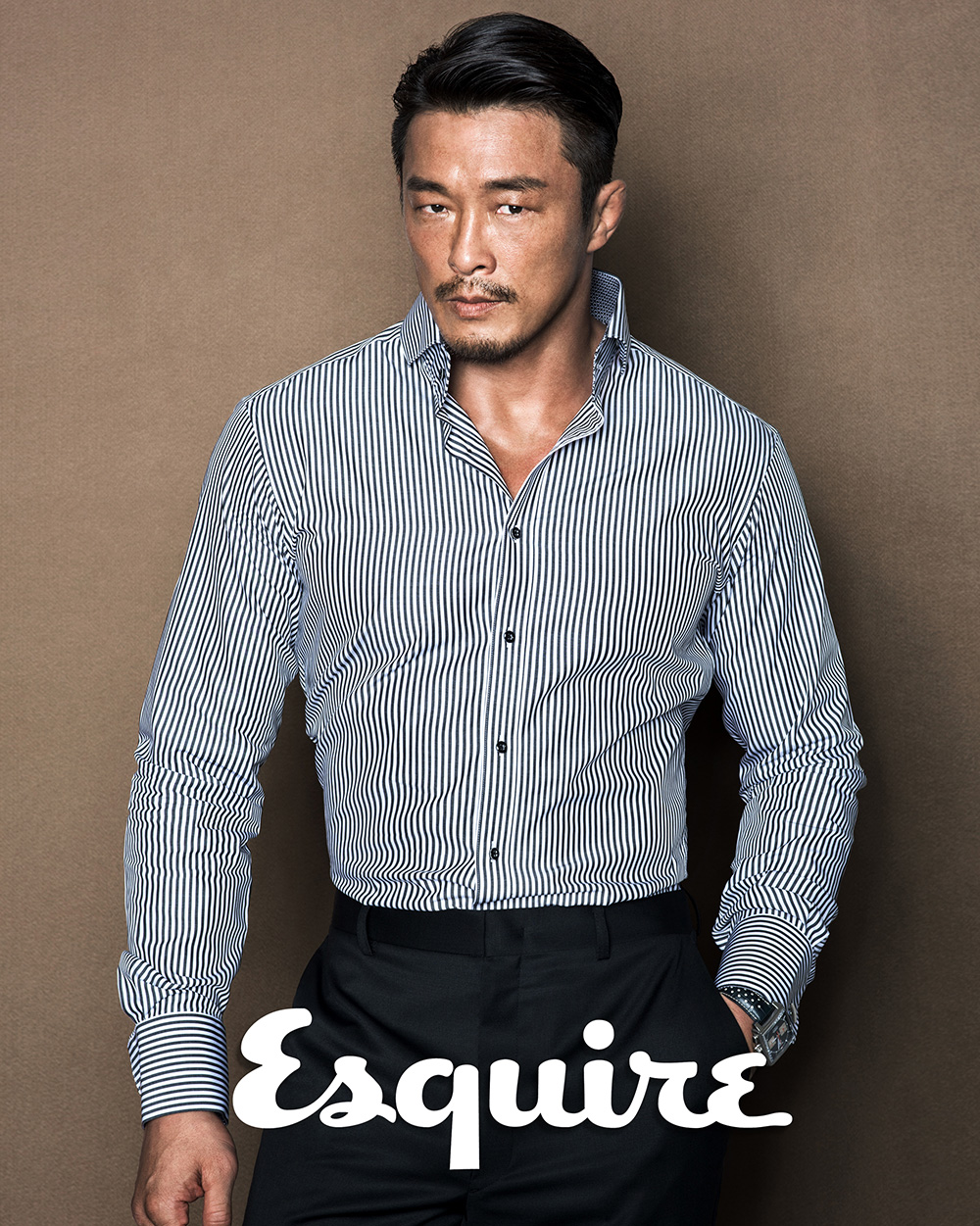 화보 속 추성훈은 거친 남자의 매력을 담뿍 담고, 강렬한 남성미를 발산하고 있다. 탄탄한 근육으로 터질 듯한 셔츠핏을 완성했다.