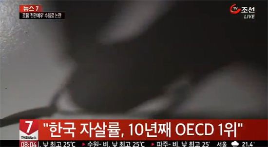 지난해 통계청 발표에 따르면 우리나라의 2013년 자살자 수는 1만4427명. 10만 명당 자살률은 28.5명으로 경제협력개발기구(OECD) 회원국 중 최상위권이다. OECD 평균은 12.0명으로, 한국은 배가 넘는다.