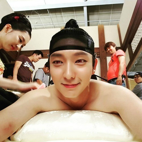 공개된 사진 속 이준기는 MBC'밤을 걷는 선비'촬영장에서 분장을 하는 듯 상의를 탈의하고 엎드려 있으며, 특히 빨간 눈과 뽀얀 속살이 보는 이들의 이목을 집중시켰다.