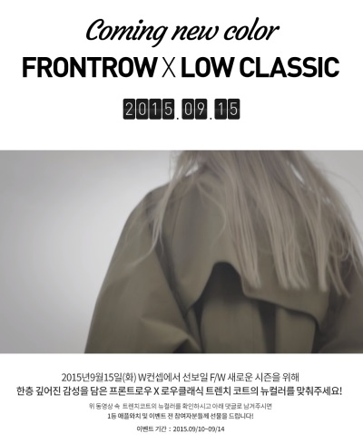 이미지 확대보기이번 "Coming New Color!" 이벤트는 지난 시즌 두 브랜드의 협업만으로도 큰 화제가 됐던, 프론트로우 X 로우클래식 오버사이즈 트렌치코트의 2015 FW 뉴 컬러 출시를 기념하기 위해 기획됐다.